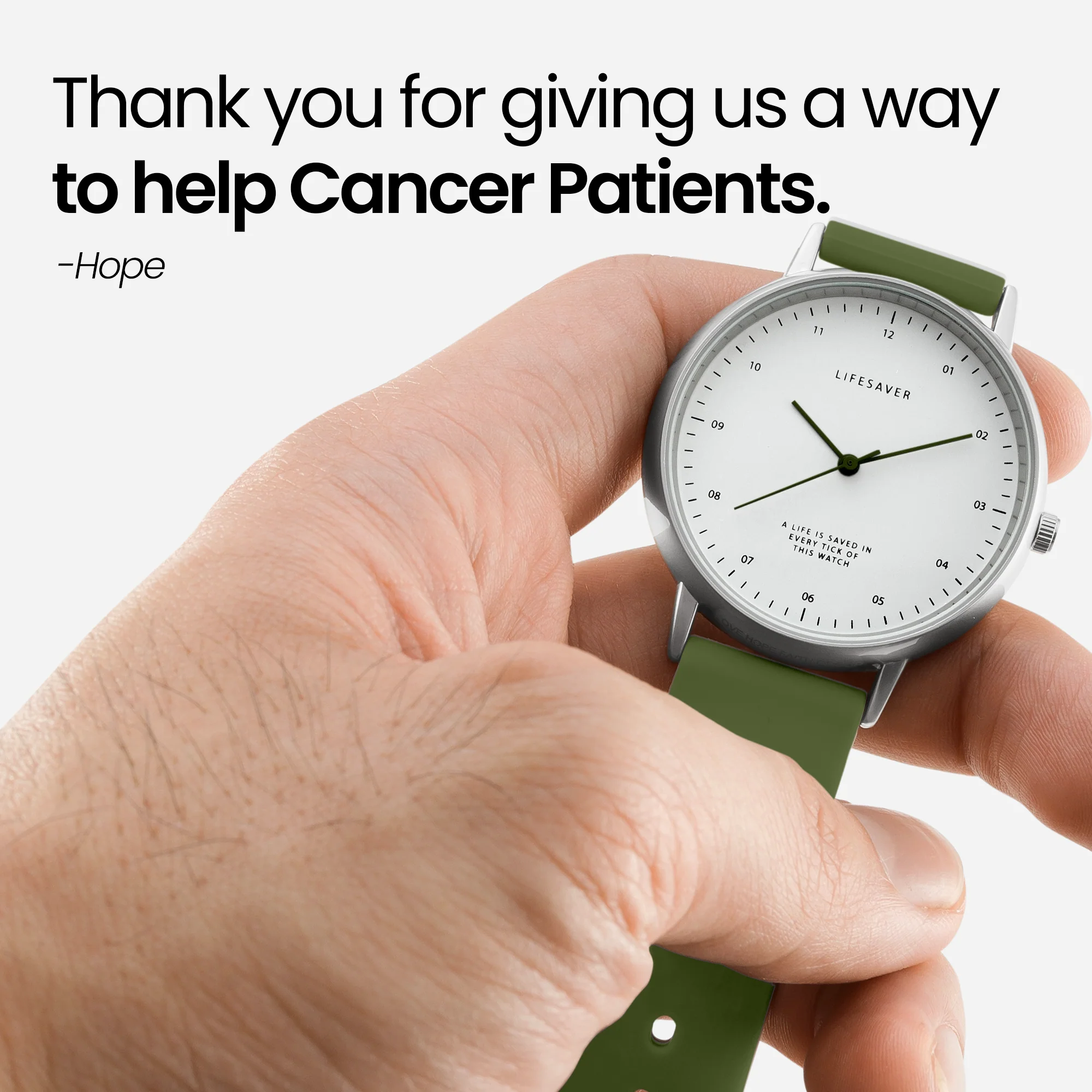 50% of the net proceeds from the purchase of this âLife Saver Watchâ will be donated to the medication of a cancer patient and various beneficiaries of LoveHopeFaith. For fashion, style and charitable cause: this watch will save lives.