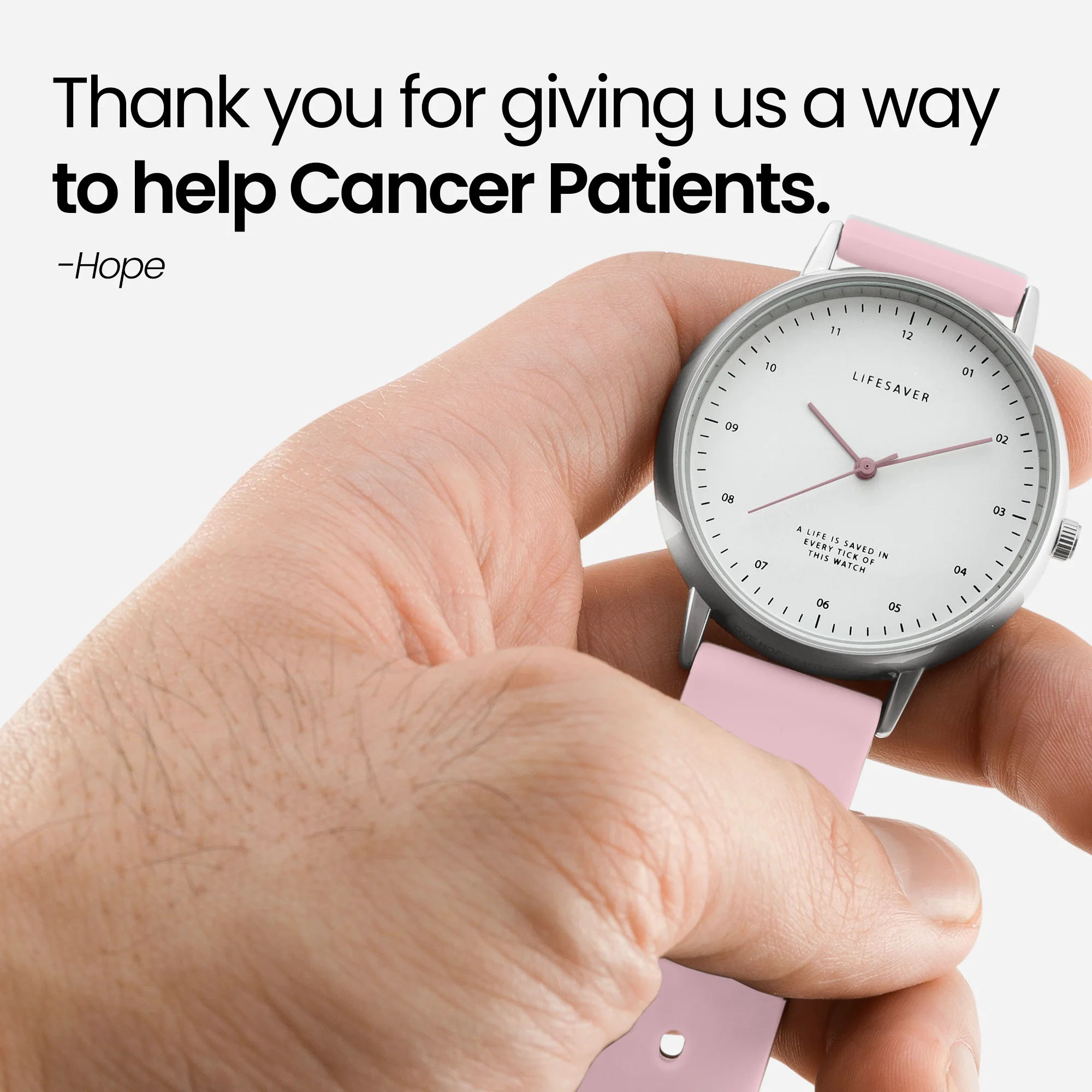50% of the net proceeds from the purchase of this âLife Saver Watchâ will be donated to the medication of a cancer patient and various beneficiaries of LoveHopeFaith. For fashion, style and charitable cause: this watch will save lives.